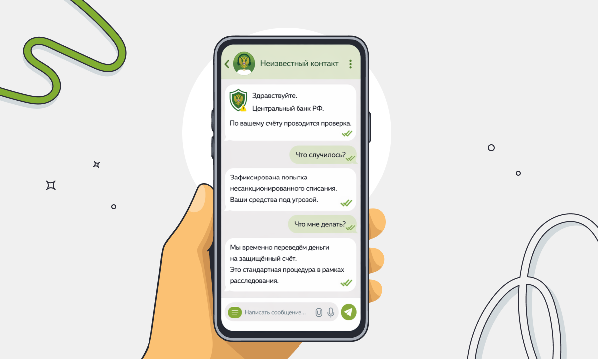 Перевод на безопасный счёт. Жертву убеждают, что её деньги под угрозой, и предлагают перевести их на поддельный безопасный счёт — якобы в Центробанке. Чтобы усилить давление, злоумышленники запугивают пользователя, ссылаются на «расследование» и обещают возможную ответственность за разглашение информации. В результате пользователь сам переводит деньги мошенникам.