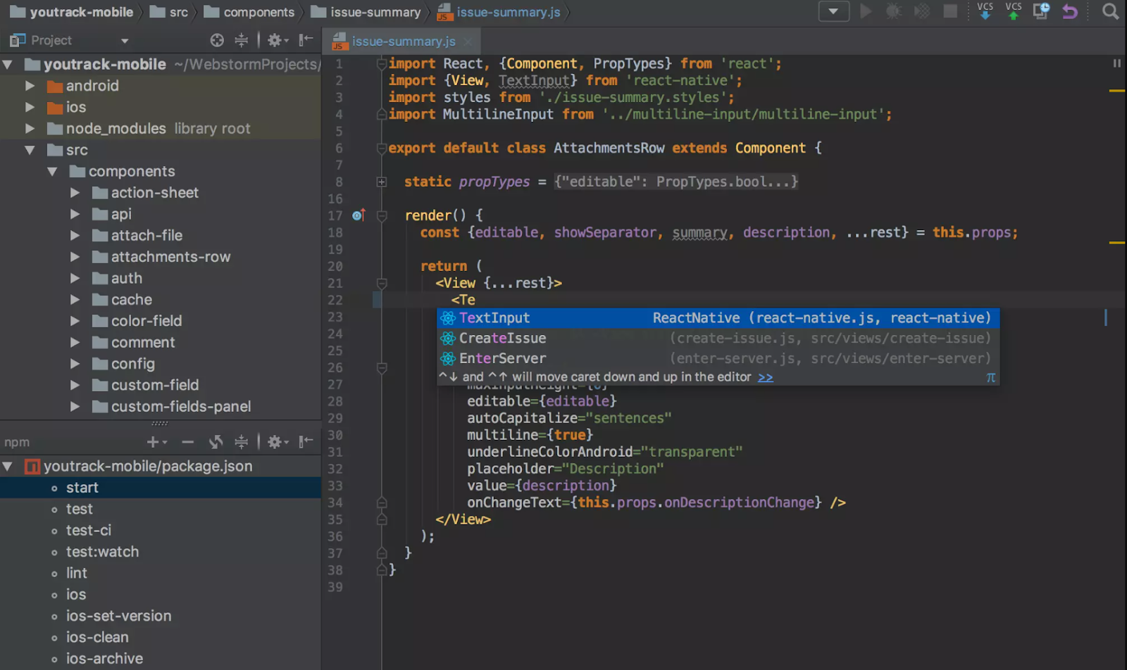 Интерфейс у программы современный. Если ранее работали с продуктами от JetBrains, то быстро освоитесь. Среди интересных фишек: умное автодополнение кода, встроенные подсказки и документация по API. Также есть инструменты для рефакторинга, встроенный терминал, отладчик, интеграция с Git, поддержка тестирования и пакетный менеджер.