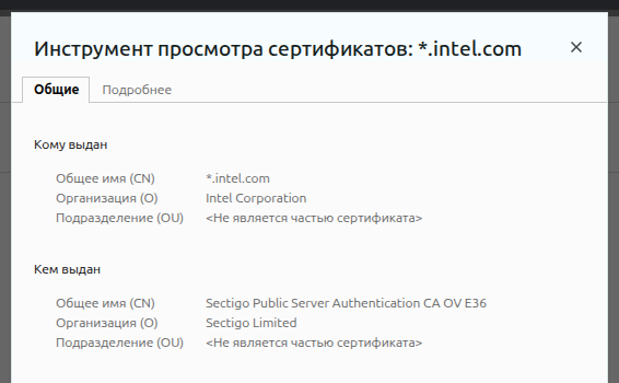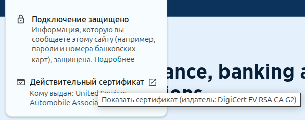 Внешние отличия от DV-сертификата есть, однако для их просмотра потребуется кликнуть на символ рядом с адресом сайта, перейти в меню «Подключение защищено» и просмотреть действительный сертификат. У сайтов с OV поле «Организация» заполнено.