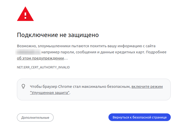 У незащищенного сайта практически нет шансов оказаться в топе поисковой выдачи. Но даже если это произошло, сперва поисковая система, а потом и браузер сообщит посетителю сайта, что лучше на такой сайт не заходить.