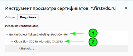 Когда браузер проверяет SSL‑сертификат сайта, он проходит всю цепочку — от сертификата конкретного домена до корневого, пока не находит соответствие корневого сертификата с одним из ключей в хранилище пользователя — они установлены и встроены в операционные системы (Windows, macOS, Linux), браузеры (Chrome, Firefox) и мобильные ОС. Если такое соответствие найдено — сертификат считается надёжным.