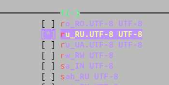 ru_RU.UTF-8Установите поддержку русского языка ru_RU.UTF-8 командой: