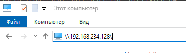 - Откройте проводник и в адресной строке введите IP-адрес сервера Samba, например: