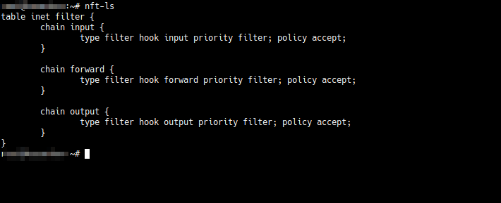 В правилах есть таблица filter семейства inet и цепочки input, forward и output. В конфигурации по умолчанию указывается семейство правил inet. Оно объединяет протоколы IPv4 и IPv6, что позволяет унифицировать семейства ip и ip6 и упростить создание правил. Если при создании таблицы не указать семейство, то по умолчанию будет использоваться семейство ip, которое работает только с IPv4.