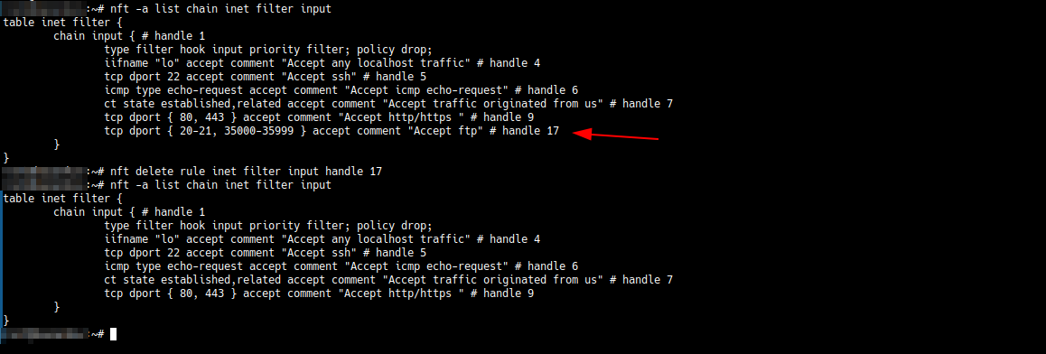 nft delete rule inet filter input handle 17