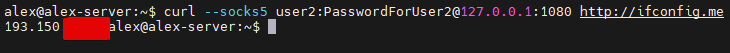 curl --socks5 user2:PasswordForUser2@127.0.0.1:1080 http://ifconfig.me