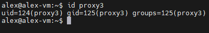 sudo adduser --system --no-create-home --disabled-login --group proxy3- Получим UID (идентификатор пользователя) и GID (идентификатор группы) созданного пользователя: