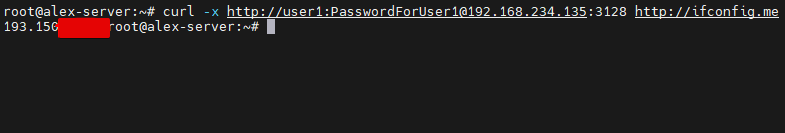curl -x http://user1:PasswordForUser1@192.168.234.135:3128 http://ifconfig.me