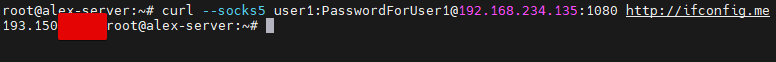 curl --socks5 user1:PasswordForUser1@192.168.234.135:1080 http://ifconfig.me
