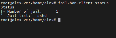 Если в разделе Jail list есть запись sshd, значит, защита SSH работает. Для изменения параметров понадобится пользовательский конфигурационный файл: