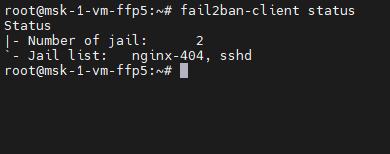 systemctl restart fail2ban- Убедитесь, что новое правило nginx-404 появилось в списке: