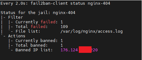 ignoreregex =В данной конфигурации параметр failregex ищет строки в файле access.log с кодом 404. <HOST> — это значение для IP-адресов: fail2ban будет автоматически подставлять адреса, которые попадут под критерий поиска.