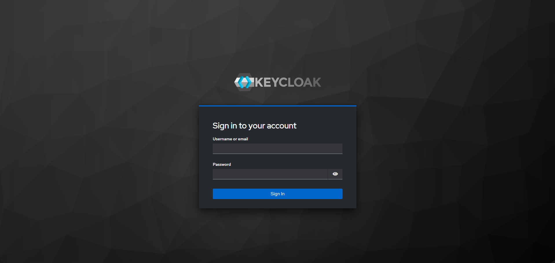 Перейдите на домен, который указали. Появится окно аутентификации в Keycloak.